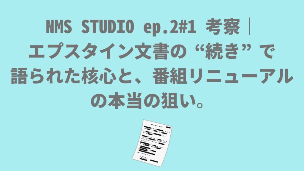 NMS STUDIO ep.2#1 考察|エプスタイン文書の“続き”で語られた核心と、番組リニューアルの本当の狙い